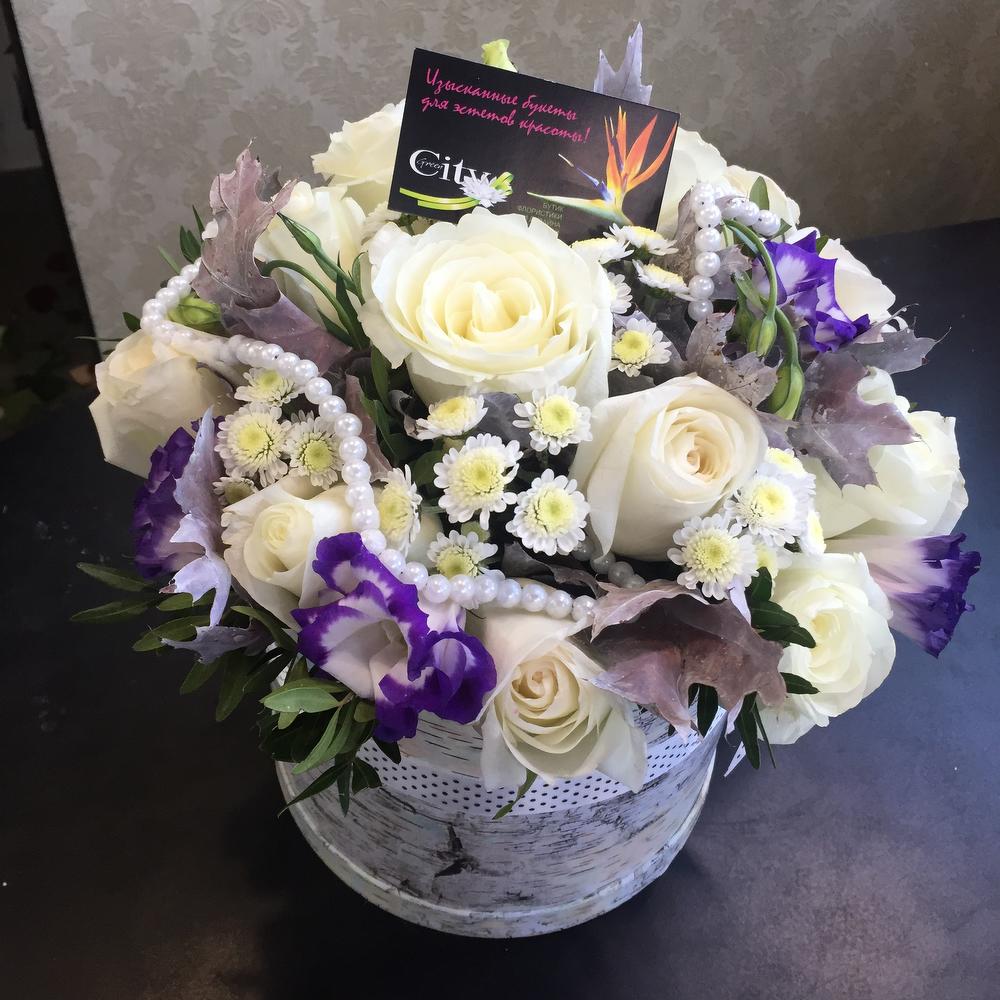 Композиция премиум-класса «Жемчужина» — элегантное сочетание нежных цветов в дизайнерской коробке. Роскошный подарок с доставкой по Новокузнецку.