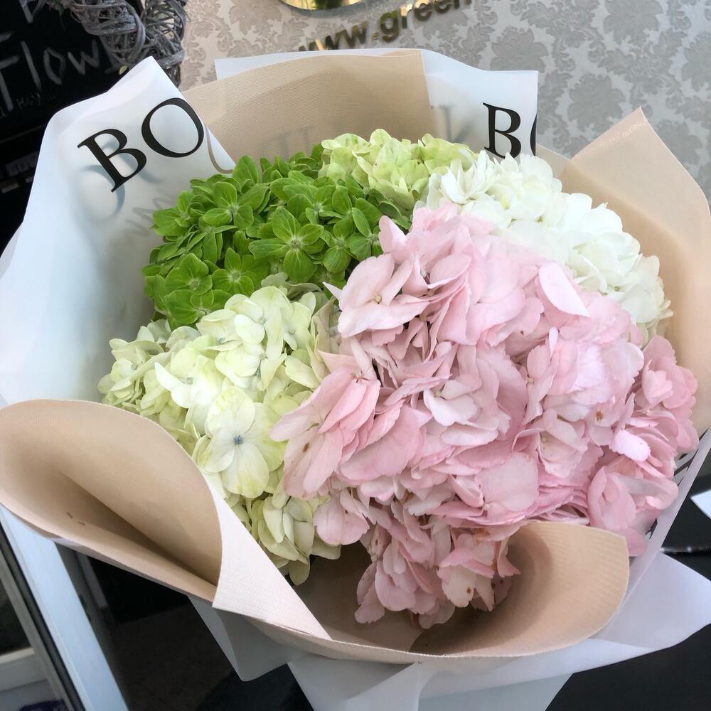Изысканный букет из гортензий «Нежный микс» – это утонченное сочетание белых, розовых и зелёных оттенков, создающее атмосферу лёгкости и элегантности. Такой цветочный ансамбль станет идеальным подарком для любимых людей, коллег или в качестве стильного интерьерного украшения.