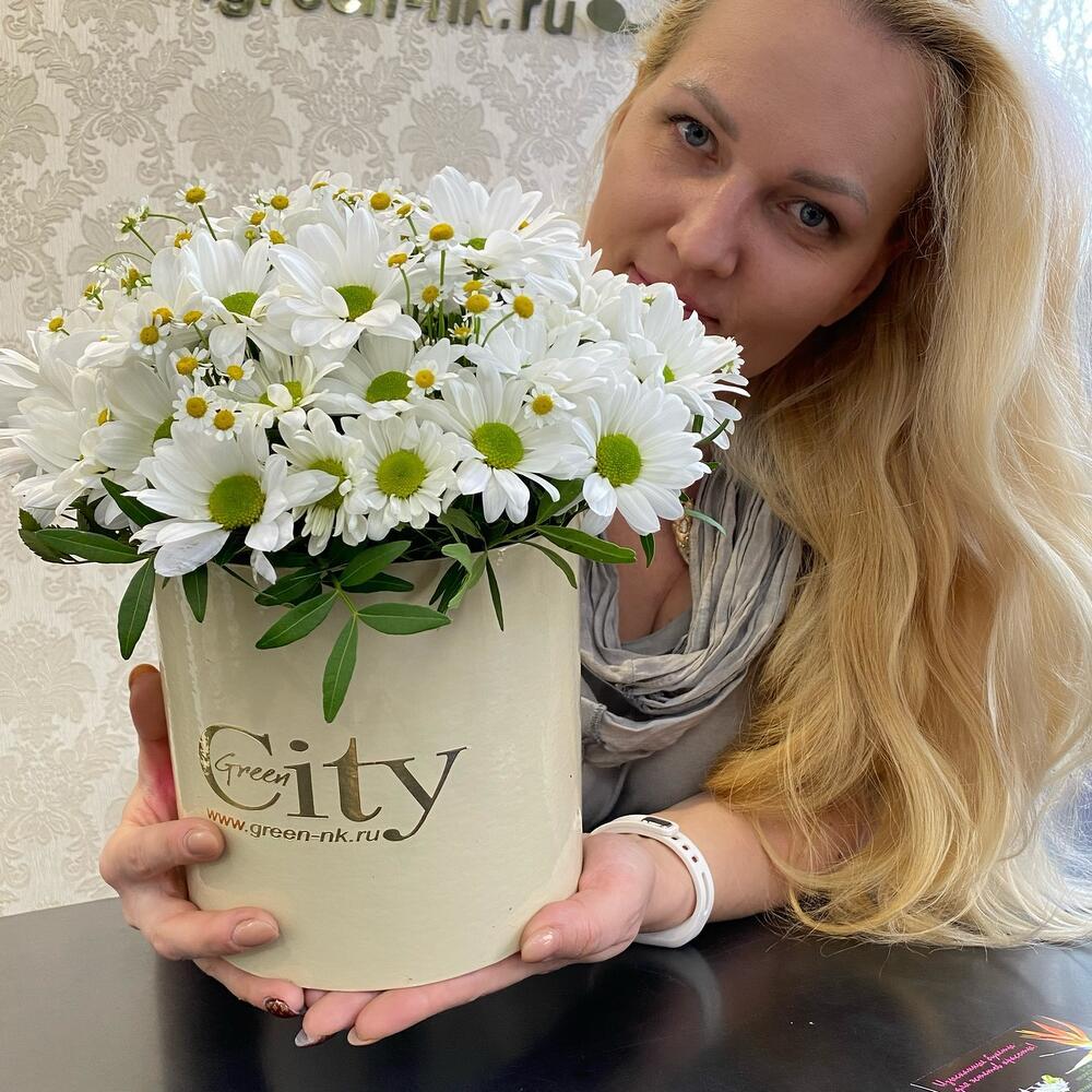 Купить букет «Летние ромашки» в шляпной коробке в Новокузнецке