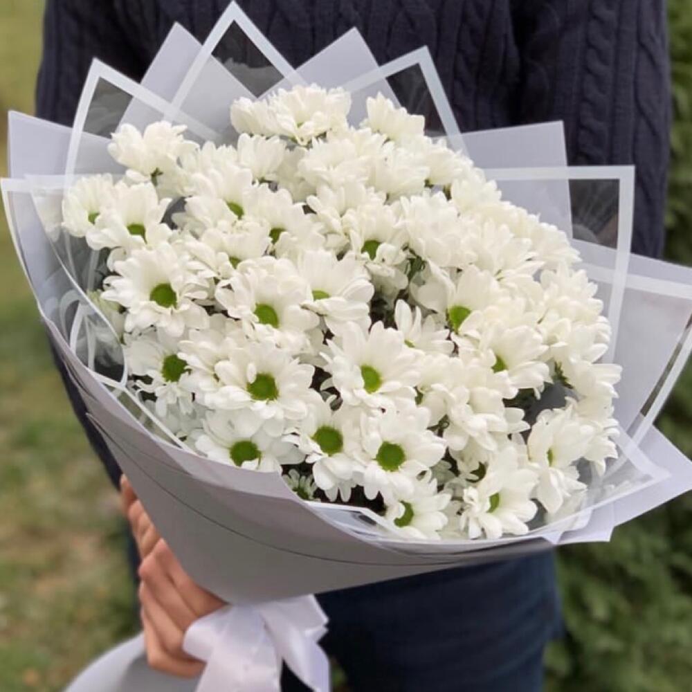 Нежный букет из 7 веток ромашковой хризантемы Кенеди в легком оформлении. Отличный выбор для любого случая!