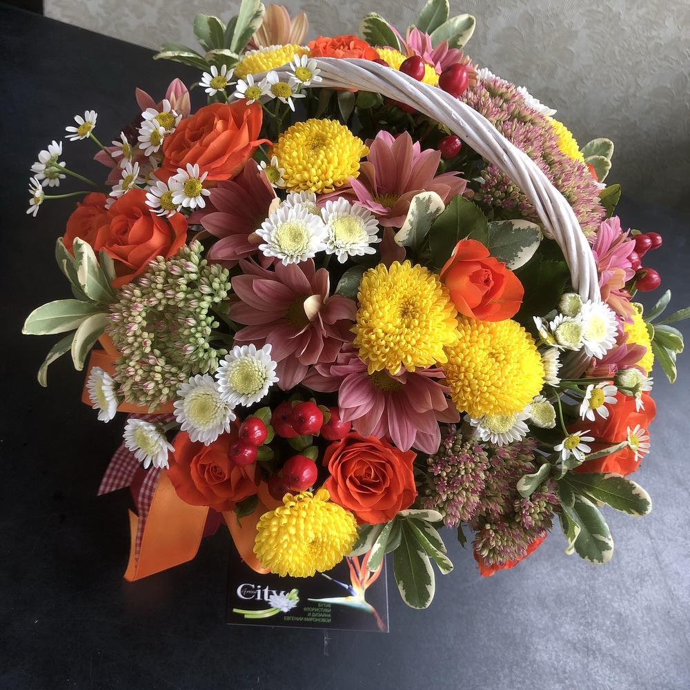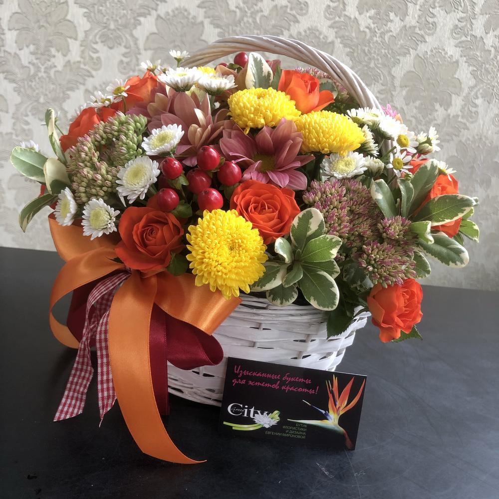 Яркая корзинка порадует своими красками любого! Бутик флористики и дизайна Евгении Мироновой Green City в г.Новокузнецке. Наши флористы создадут для вас уникальный букет из цветов высшего качества, и мы доставим Вам его уже сегодня! Наш адрес: г.Новокузнецк, пр.Металлургов 16, ТРЦ Юност»