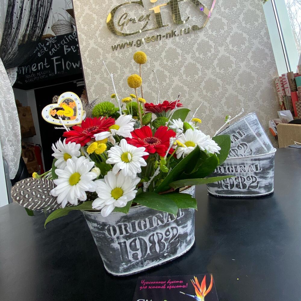 Оригинальная композиция. Бутик флористики и дизайна Евгении Мироновой Green City в г.Новокузнецке. Наши флористы создадут для вас уникальный букет из цветов высшего качества, и мы доставим Вам его уже сегодня!