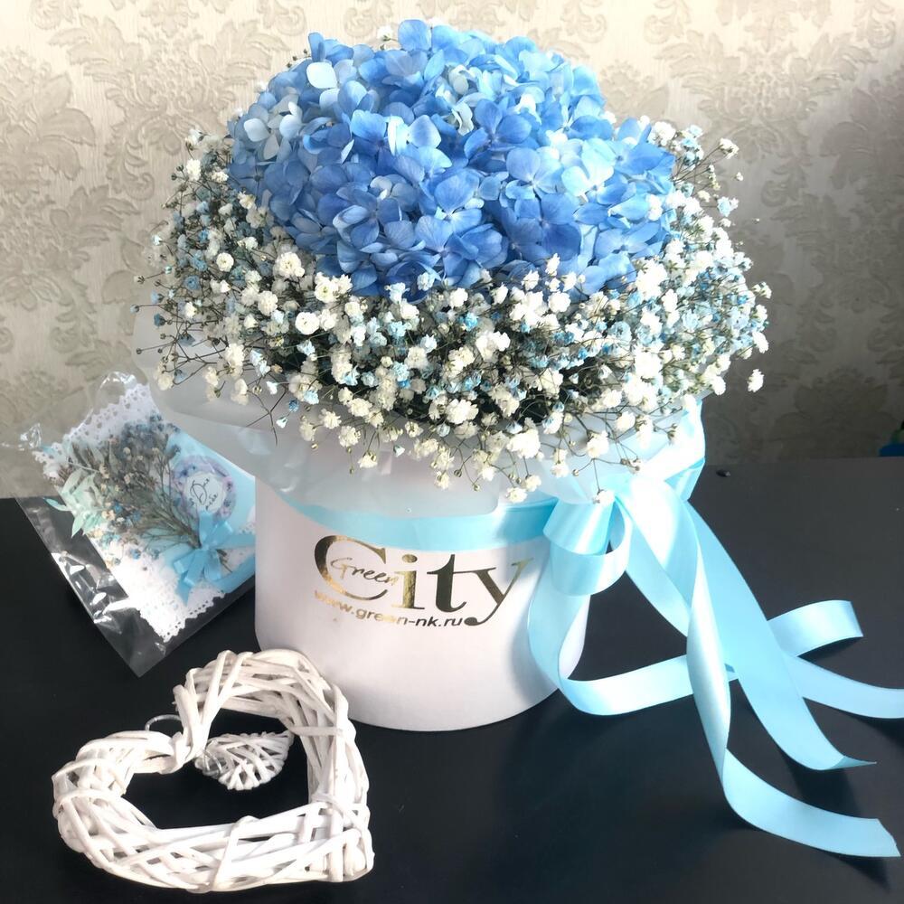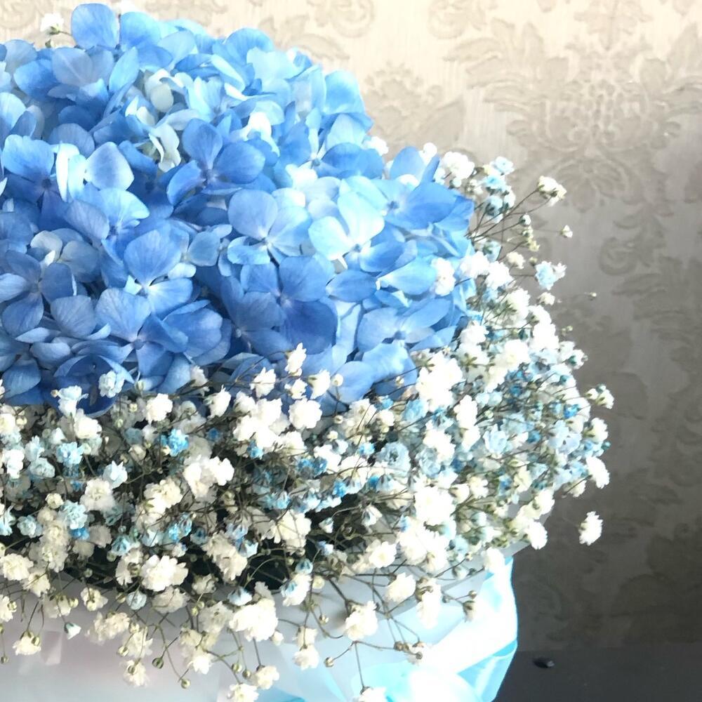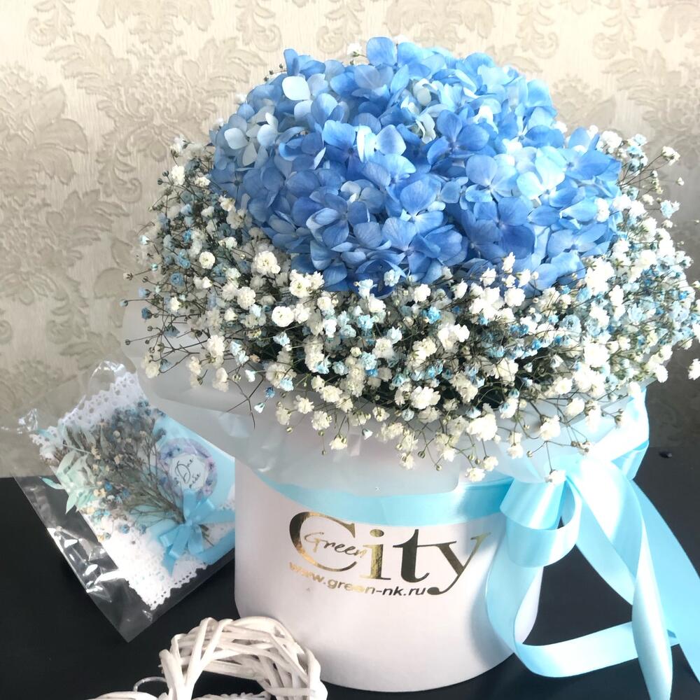 Теги: гипсофила, Гортензия, цветы в коробке