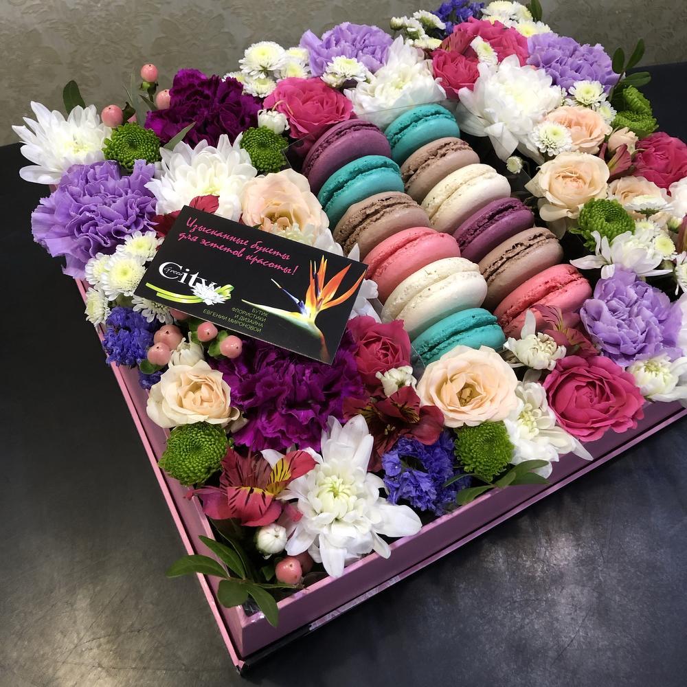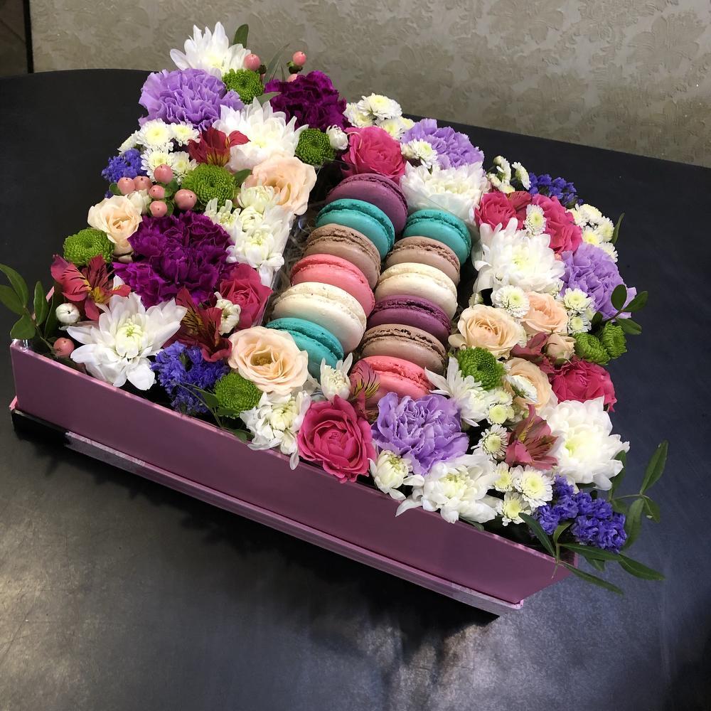 Сладкая коробка с французским пирожным макаронс.