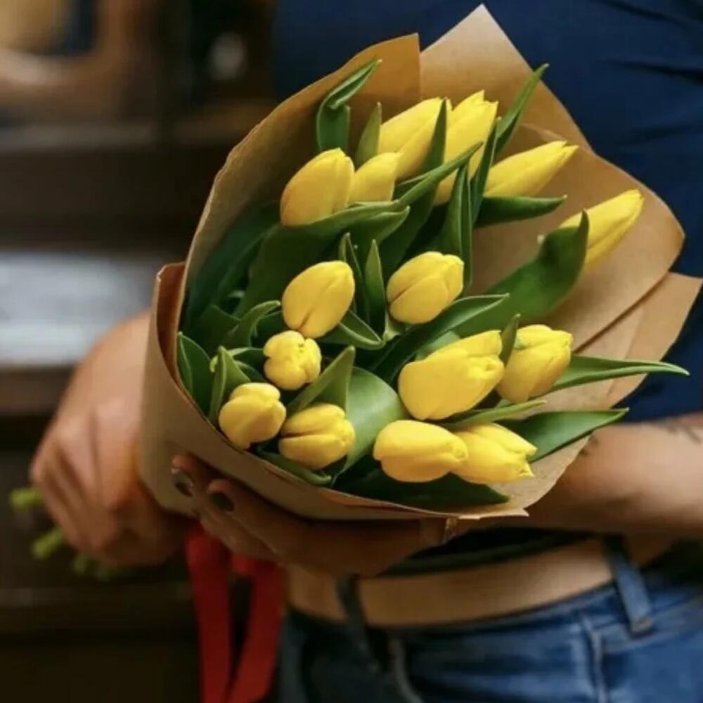 Желтые тюльпаны символизируют радость, дружбу и свежесть, делая этот букет идеальным подарком для любого случая.