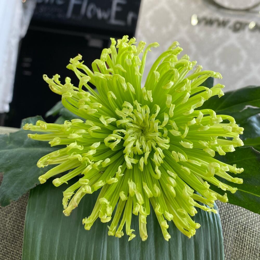 Хризантема «Шамрок» — это изысканное растение с необычными зелеными цветами.
