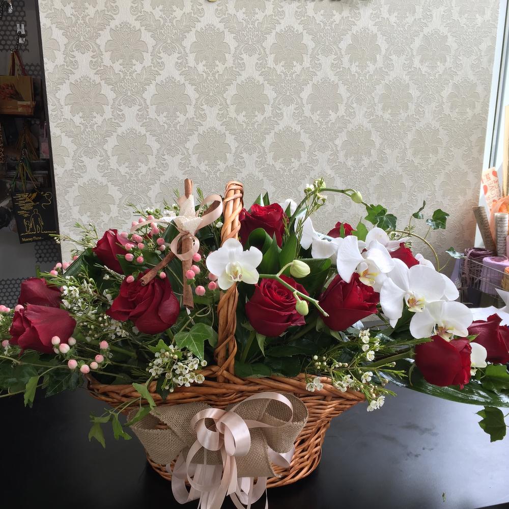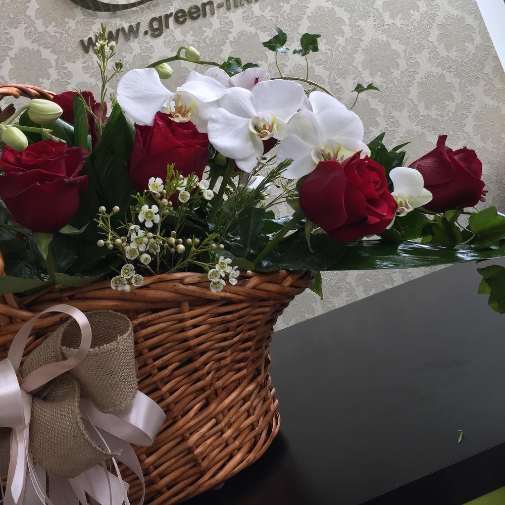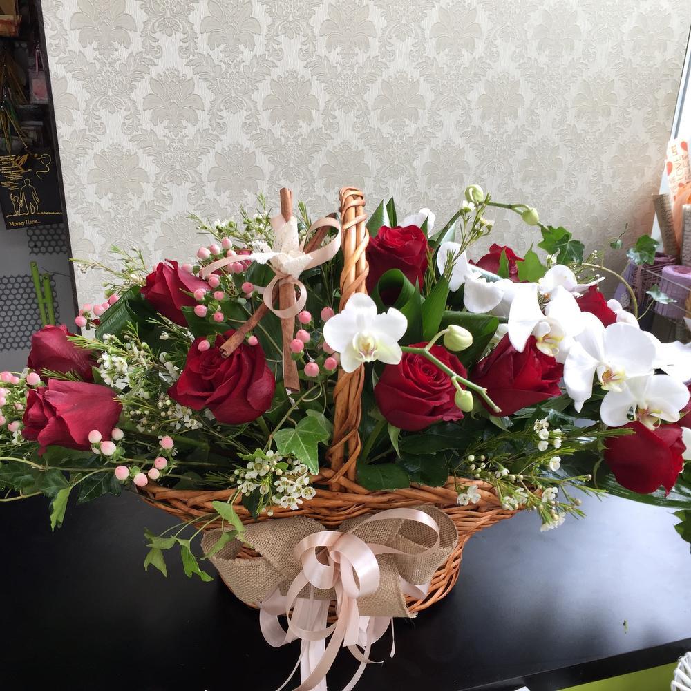 - Широкий ассортимент букетов и корзин из роз и орхидеи, всегда свежие цветы.